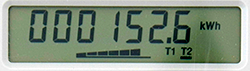 Označení aktivního tarifu je zobrazeno malým symbolem T1, T2, T3 nebo T4 bez podtržítka. Ten je na displeji vpravo vedle bargrafu (orientační indikace spotřeby).